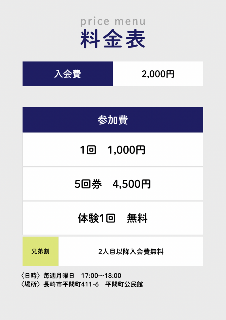 - 稽古場所 長崎市平間町公民館